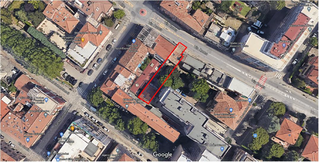 La proprietà è costituita da due edifici separati: uno inserito in una schiera su fronte strada, l'altro interno al lotto isolato. Lo studio farà riferimento all'edificio prospiciente alla strada poiché risulta essere l'unico in aggregato edilizio.