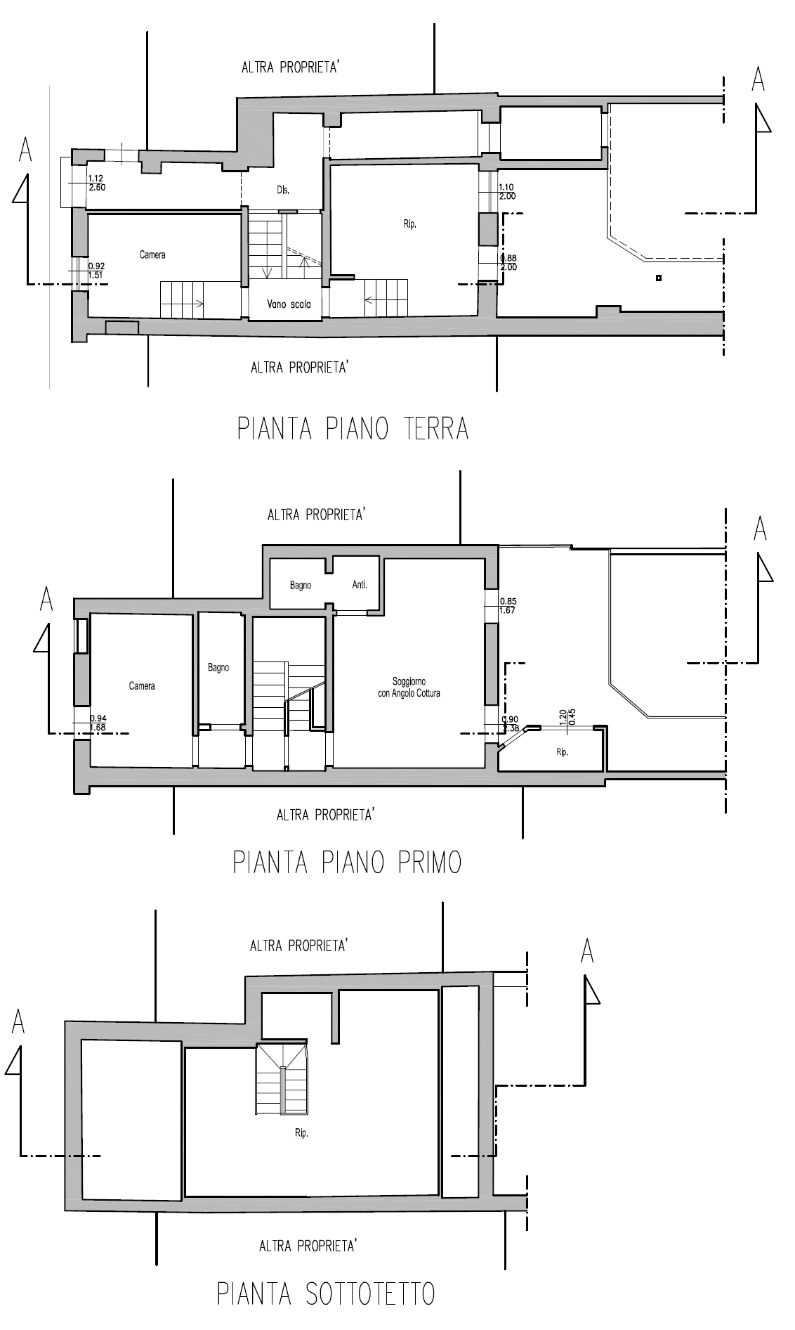 Fig. 5 - Piante: piano terra, piano primo, sottotetto