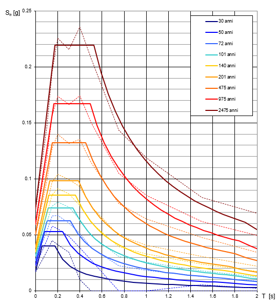 Fig. 2 - Spettri di risposta elastici per il periodo TR di riferimento relativi al comune di Erchie (BR)