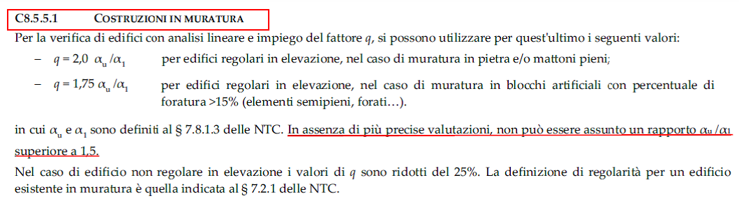 Tuttavia, per gli edifici in muratura esistenti, la Circolare NTC 2018 al §C8.7.1.3.1 specifica: