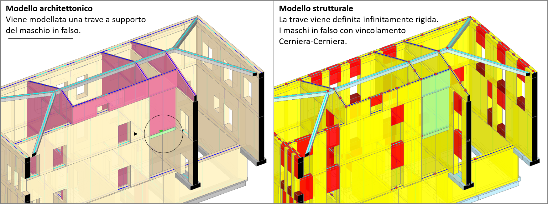 Nella fase di modellazione architettonica, in seguito all’inserimento di tutte le aperture è consigliabile spezzare i muri troppo lunghi in modo da evitare che siano generati dei maschi murari con lunghezza maggiore di 2-2.5 volte la propria altezza.