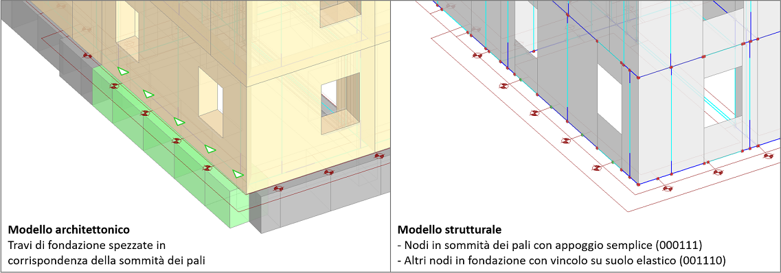 Seguendo la procedura illustrata, è possibile considerare la presenza di pali anche su porzioni limitate delle fondazioni (p.es. la parte relativa a un prospetto).