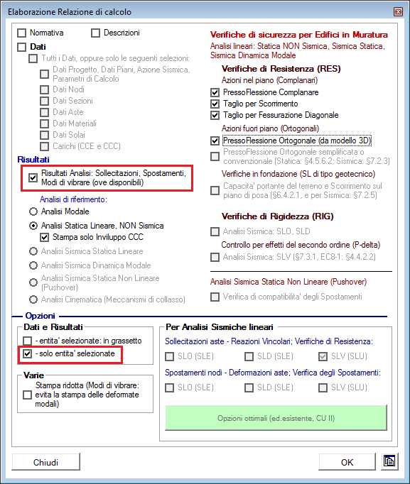 Nei controlli di check-up, la massa partecipante considerata è quella relativa ai modi di vibrare calcolati al primo passo dell’analisi pushover (che tengono conto degli svincolamenti introdotti a causa dei carichi statici). È possibile consultare tali risultati modali selezionando l’opzione “Al passo Pushover” nella scheda “Risultati” per “Analisi Modale”.