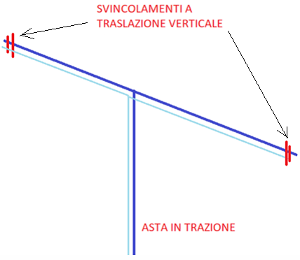 Svincolando la traslazione assiale (traslazione x) all’estremo finale del maschio in trazione, lo sforzo normale sarà nullo in sommità e pari al peso proprio alla base.