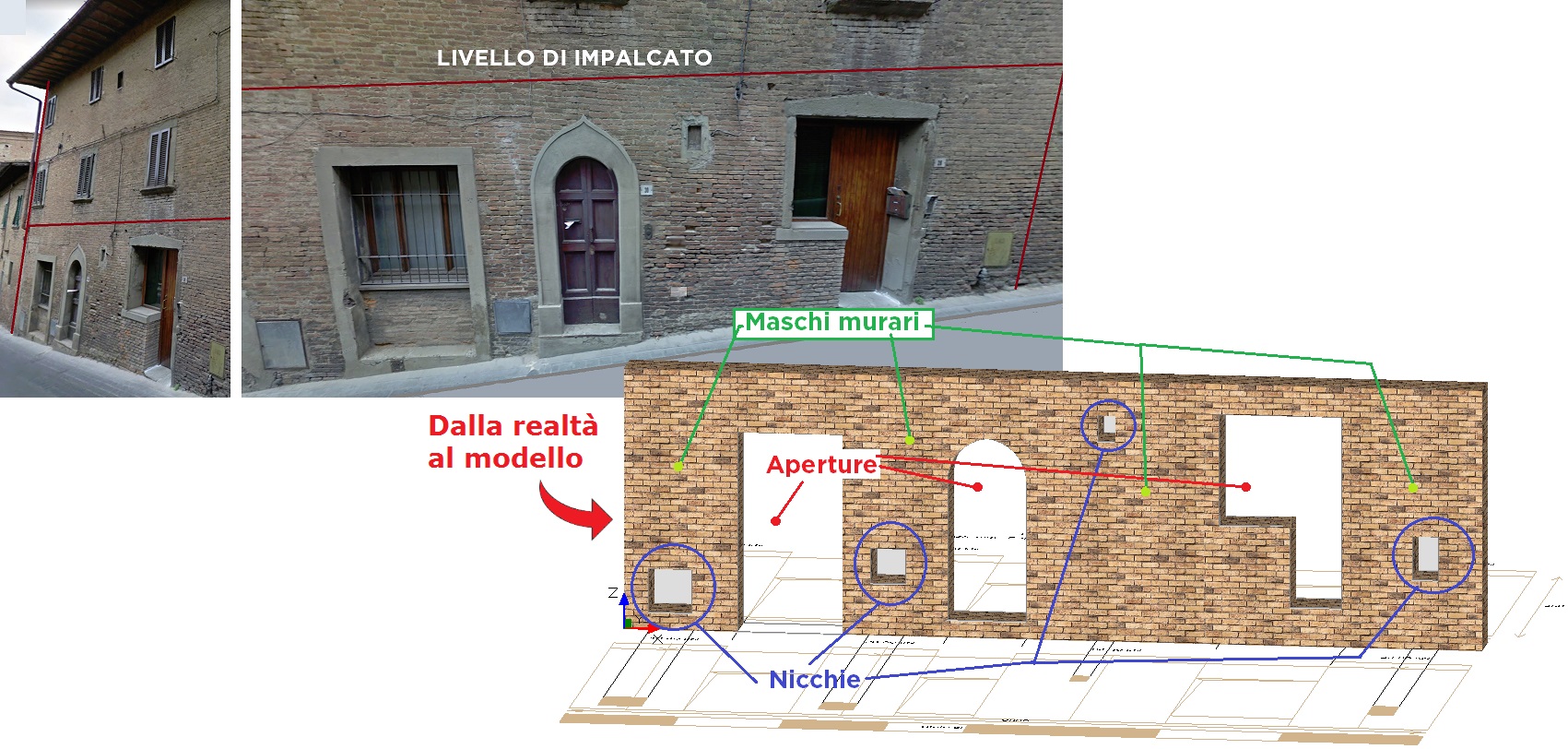 Uno specifico algoritmo scansiona orizzontalmente ogni maschio intercettato da nicchie o cavità alle sue diverse quote, individuando la sezione resistente più piccola determinata dalle riduzioni locali di spessore. In conseguenza di ciò, i parametri meccanici del maschio (rigidezza, forza ultima) subiscono una modifica peggiorativa.