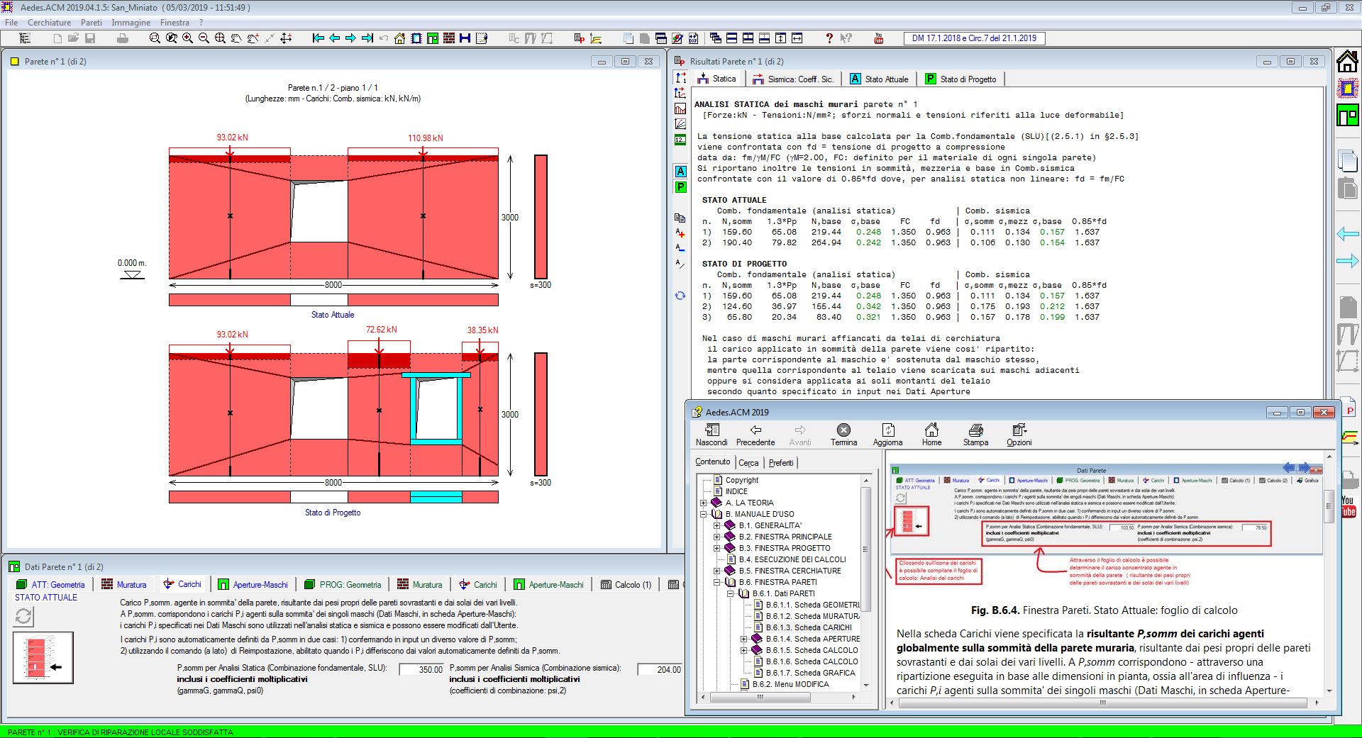 Corrispondentemente, nel passaggio da uno Stato Attuale con nicchie e cavità ad uno Stato di Progetto dove esse vengono almeno parzialmente richiuse, è possibile con ACM quantificare il miglioramento del comportamento sismico della parete.